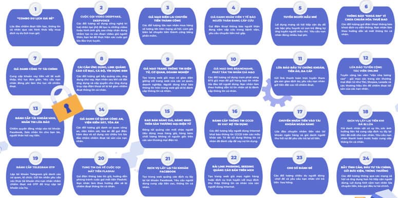 Theo thông tin từ Cục An toàn thông tin, Bộ Thông tin và Truyền thông, lừa đảo trực tuyến là vấn đề đã và đang nhận được nhiều sự quan tâm của toàn xã hội. Các đối tượng xấu lợi dụng bối cảnh bùng nổ công nghệ thông tin để thực hiện nhiều vụ lừa đảo trực tuyến, chiếm đoạt tài sản có giá trị cao. Trong đó, có 3 nhóm lừa đảo chính (giả mạo thương hiệu, chiếm đoạt tài khoản và các hình thức kết hợp khác) với 24 hình thức lừa đảo đang diễn ra trên không gian mạng Việt Nam.