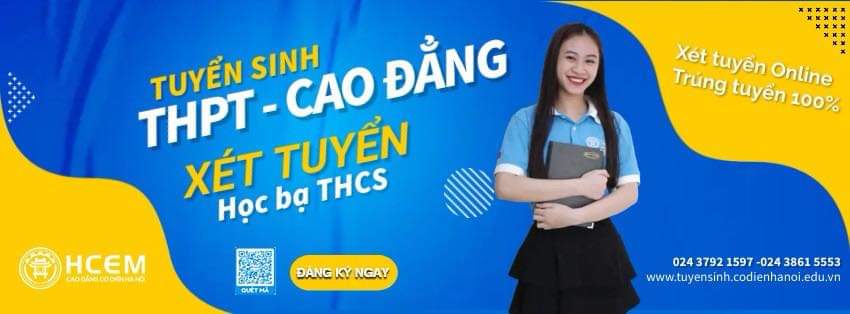 Cao đẳng Cơ điện Hà Nội (HCEM) đang tuyển sinh hệ Cao đẳng năm học 2022-2023 với chương trình song bằng hấp dẫn (19 tuổi tốt nghiệp song bằng chính quy (THPT – Cao đẳng) mà không bị áp lực thi cử khi chỉ xét tuyển trên học bạ.