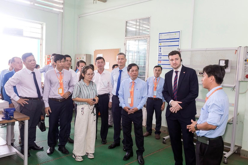 Lãnh sứ quán CHLB Đức, đại điện tổ chức GIZ cùng lãnh Đạo tỉnh An Giang tham quan xưởng 3 cấp độ của ngành Cơ điện tử.