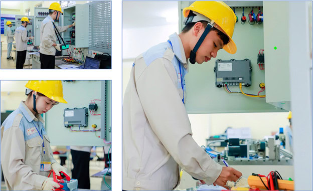Giảng viên Nguyễn Duy Tuyến (Công ty Hitachi Energy) kiểm tra thí sinh ngành CGKL đánh giá: “ Từ ghế nhà trường đến doanh nghiệp là cả quy trình đào tạo bài bản, BCi là môi trường tuyệt vời giúp các em sinh viên nghề CGKL có được kiến thức, kỹ năng nghề nghiệp bài bản. Đặc biệt là tuân thủ về an toàn lao động, có thái độ cầu thị trong học tập, luôn trau dồi kiến thức, tích lũy kinh nghiệm, các kỹ năng trong xử lý, vận hành máy móc công nghệ để làm ra được các sản phẩm hoàn hảo khá thuần thục.