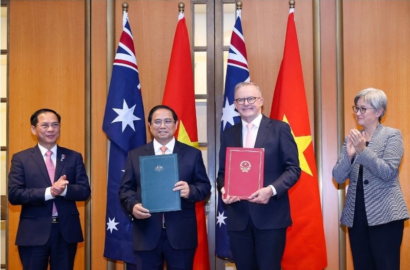 Sáng 7/3, tại Thủ đô Canberra, Australia, sau lễ đón và hội đàm, Thủ tướng Phạm Minh Chính và Thủ tướng Australia Anthony Albanese đã trao đổi tuyên bố về việc nâng cấp quan hệ hai nước lên Đối tác Chiến lược toàn diện và chứng kiến lễ trao 11 văn kiện hợp tác quan trọng khác trên các lĩnh vực giữa hai nước, trong đó có Kế hoạch thực hiện Bản ghi nhớ giữa Chính phủ Australia và Chính phủ Việt Nam về việc hỗ trợ công dân Việt Nam làm việc trong ngành nông nghiệp Australia.