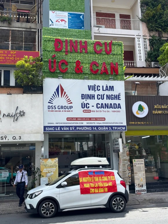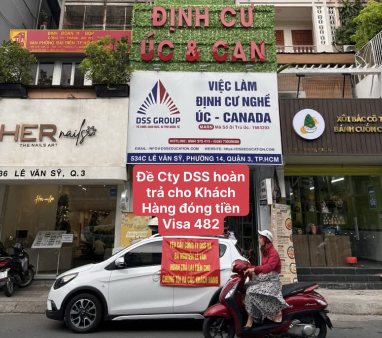 Khách hàng căng băng rôn đòi tiền tại một công ty có trụ sở trên địa bàn TP. HCM vì một thời gian dài công ty này không xin được Visa 482.