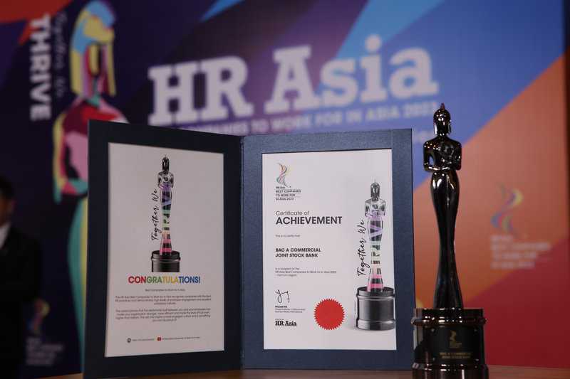 Ngay lần đầu tiên tham gia Giải thưởng hàng đầu Châu Á về Quản trị nhân sự HR Asia Award, Ngân hàng TMCP Bắc Á (BAC A BANK) đã vinh dự giành 02 giải thưởng quan trọng nhất: “Nơi làm việc tốt nhất Châu Á 2023” và “Doanh nghiệp Quan tâm Chăm sóc Nhân viên tuyệt vời nhất”.