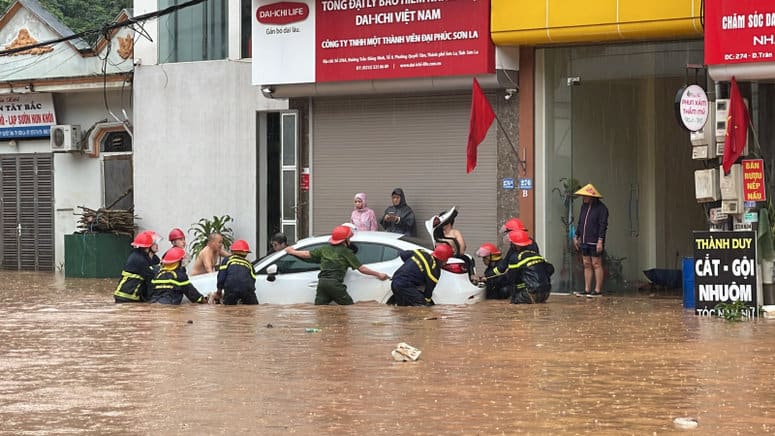Mưa giông kéo dài ở miền Bắc khiến khu vực TP Sơn La ngập sâu vào ngày hôm qua (7/6).