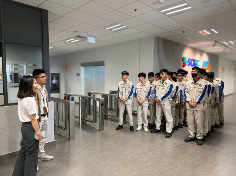 Hay các chương trình thăm quan, trải nghiệm thực tế đưa học sinh tới các doanh nghiệp tìm hiểu về mô hình sản xuất, giúp các em hiểu được quy trình sản xuất làm ra sản phẩm, cũng như biết được vị trí việc làm của mỗi người thợ trong mỗi công đoạn sản xuất. Từ đó, định hình cho mình một hướng đi phù hợp với năng lực, cũng như nhu cầu sử dụng lao động của thị trường lao động hiện nay.