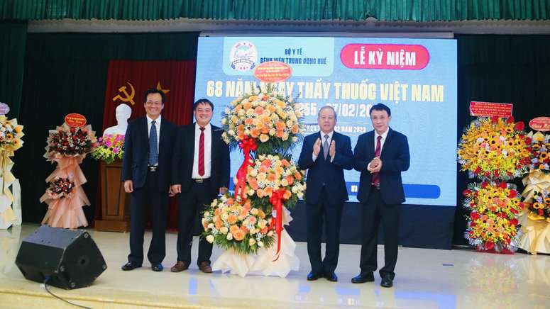Ghi nhận nỗ lực của tập thể CBVC của Bệnh viện TƯ Huế, nhân dịp này Đồng chí Phan Ngọc Thọ – Phó Bí thư thường trực Tỉnh ủy đã trao tặng lẵng hoa chúc mừng thừa ủy quyền của Quyền Chủ tịch nước Võ Thị Ánh Xuân và lẵng hoa chúc mừng của Tỉnh ủy – HĐND – UBND tỉnh.