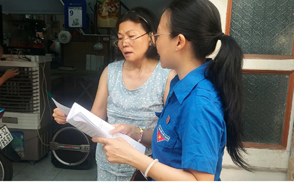 Nhận phiếu thông tin về việc đăng ký tham gia BHXH, BHYT do Ban Chỉ đạo thực hiện chính sách phường ký, bà Nguyễn Thị Bích (Phường Tân Định, quận 1) bày tỏ sự tin tưởng và chia sẻ các thông tin để cán bộ BHXH quận ghi nhận vào Phiếu. Bà cho biết, gia đình mới chỉ có mình bà đang tham gia BHYT diện hộ gia đình, còn 2 người là chồng và con gái chưa tham gia.