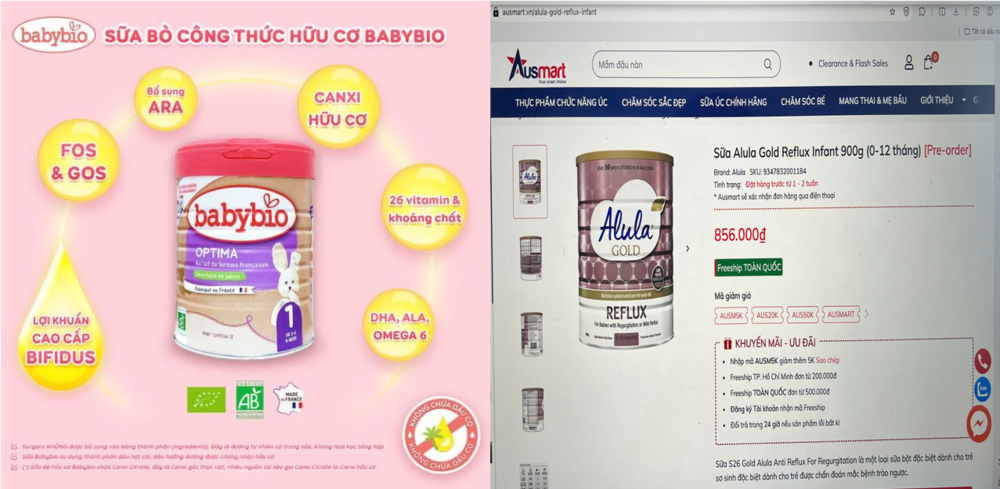 Trên cơ sở cảnh báo quốc tế và qua công tác hậu kiểm việc đăng ký bản công bố, tự công bố, sản xuất và kinh doanh thực phẩm, Cục An toàn thực phẩm phát hiện sản phẩm thực phẩm công thức Babybio Optima 1 do Công ty Vitagermine sản xuất đang được quảng cáo, kinh doanh trên Lazada và Shopee; Sản phẩm thực phẩm công thức Alula Gold Reflux do Công ty Sanulac Nutritionals Australia Pty Ltd sản xuất đang được quảng cáo, kinh doanh trên Ausmart.