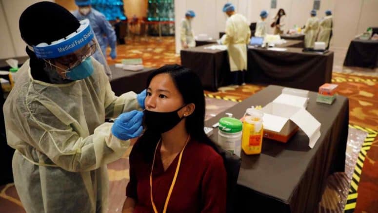 Xét nghiệm Covid-19 ở Singapore. Ảnh: AFP