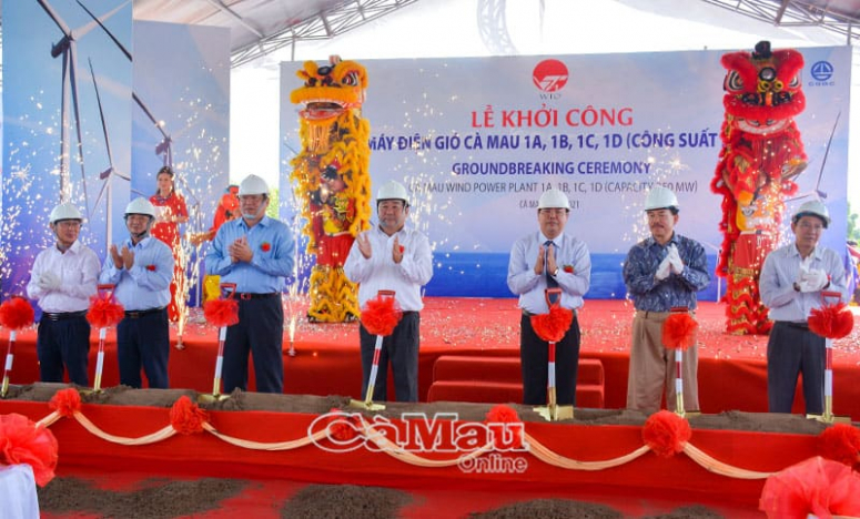 Dự án Nhà máy điện gió Cà Mau 1A, 1B, 1C và 1D vừa được khởi công xây dựng tại ấp Mai Hoa, xã Nguyễn Huân, huyện Đầm Dơi, tỉnh Cà Mau, với vốn đầu tư khoảng 10.000 tỷ đồng.