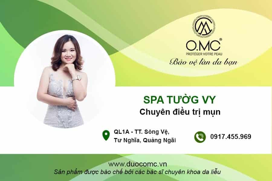Luôn tìm kiếm để phục vụ khách hàng tốt nhất có thể, sau nhiều năm, Spa Tường Vy tại TT Sông Vệ ,Tư Nghĩa, Quảng Ngãi đã được Công ty TNHH Dược France chọn áp dụng dòng sản phẩm sinh học mang thương hiệu O.MC (www.duocomc.vn) được các bác sĩ chuyên khoa da liễu nghiên cứu, chiết xuất với thành phần chủ yếu từ thảo dượ thiên nhiên. Mỗi sản phẩm là một phát minh khoa học sẽ phục hồi làn da thương tổn, lấy lại vẻ đẹp tự nhiên cho làn; đặc biệt loại trừ các sang thương mụn trứng cá.