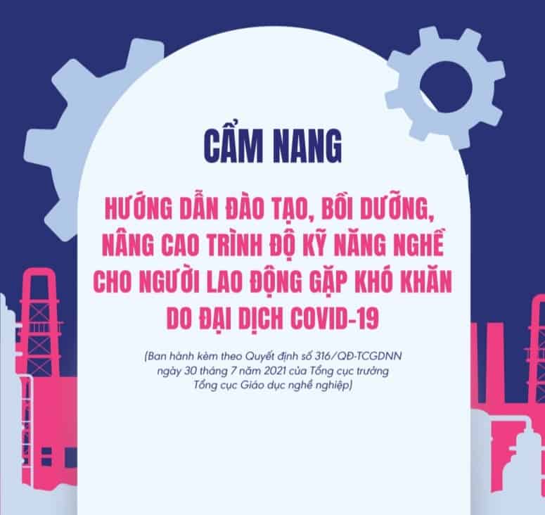 Để giúp người sử dụng lao động, Sở Lao động – Thương binh và Xã hội các địa phương và cơ sở giáo dục nghề nghiệp triển khai thực hiện tốt chính sách này, Tổng cục Giáo dục nghề nghiệp đã tổ chức biên soạn cuốn “Cẩm nang hướng dẫn đào tạo, bồi dưỡng nâng cao trình độ kỹ năng nghề cho người lao động gặp khó khăn do đại dịch COVID-19”.