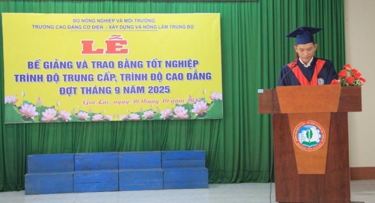 Chiều ngày 30/10/2025, gần 400 học sinh – sinh viên ở các trình độ cao đẳng, trung cấp khóa 48, 49, 50 vừa tham gia đợt thi tốt nghiệp tháng 9/2025 của Trường Cao đẳng (CĐ) Cơ điện Xây dựng và Nông lâm Trung bộ (tỉnh Gia Lai) đã nhận bằng tốt nghiệp, khép lại hành trình học tập đầy nỗ lực và mở ra cánh cửa mới trên con đường lập thân, lập nghiệp, sẵn sàng đóng góp vào lực lượng lao động kỹ thuật chất lượng cao của khu vực miền Trung – Tây Nguyên và cả nước.