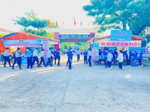 Đội Tiếp sức mùa thi của Đoàn Trường Cao đẳng Cơ điện – Xây dựng và Nông lâm Trung Bộ tham gia tình nguyện tại Hội đồng thi vào 10 Trường THPT Hòa Bình (Thị xã An Nhơn, tỉnh Bình Định)
