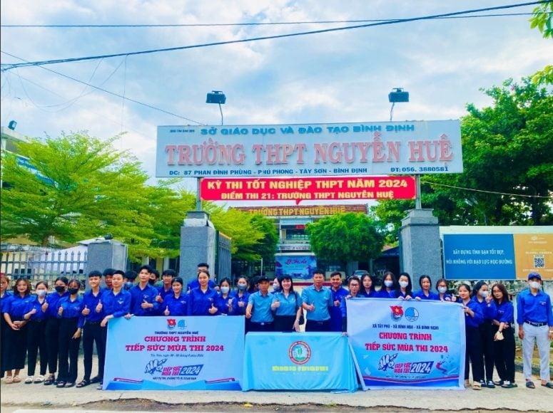Đội Tiếp sức mùa thi của Đoàn Trường Cao đẳng Cơ điện – Xây dựng và Nông lâm Trung Bộ tham gia tình nguyện tại Hội đồng thi TN THPT Trường THPT Nguyễn Huệ (huyện Tây Sơn, tỉnh Bình Định)