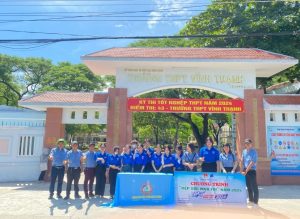 Đội Tiếp sức mùa thi của Đoàn Trường Cao đẳng Cơ điện – Xây dựng và Nông lâm Trung Bộ tham gia tình nguyện tại Hội đồng thi TN THPT Trường THPT Vĩnh Thạnh (huyện Vĩnh Thạnh, tỉnh Bình Định)