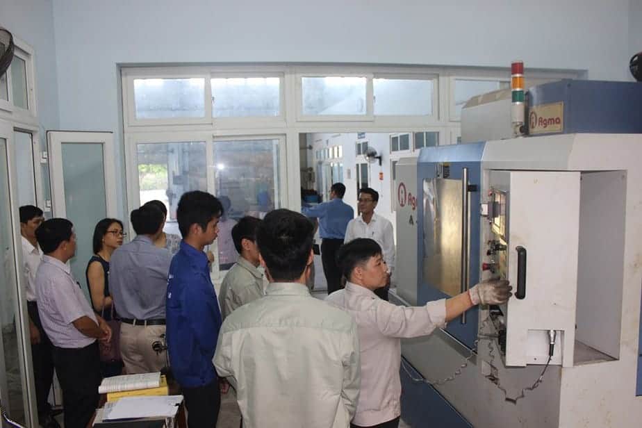 Hiệu trưởng và đoàn kiểm tra công tác an toàn lao động và vệ sinh công nghiệp tại xưởng thực hành