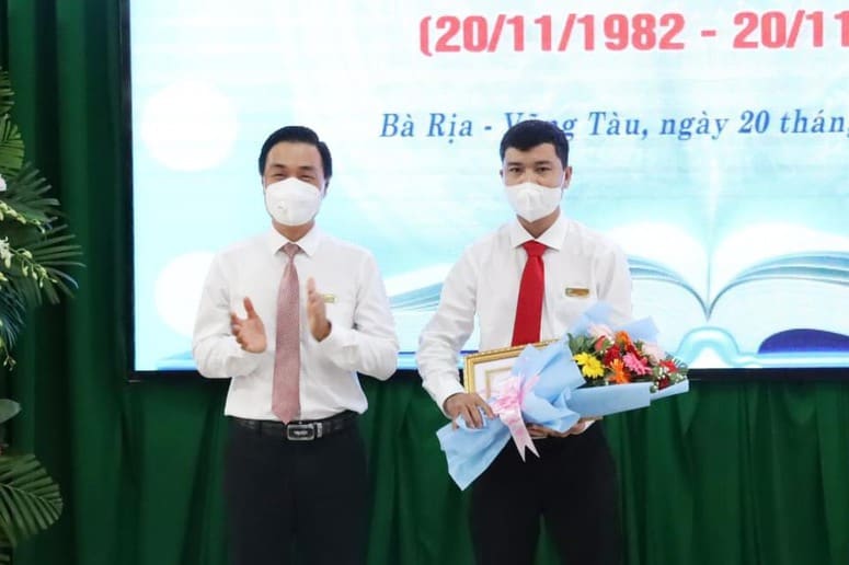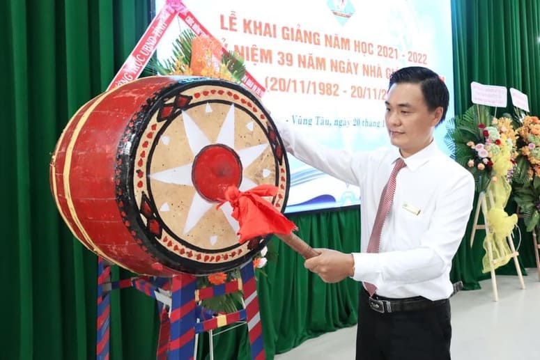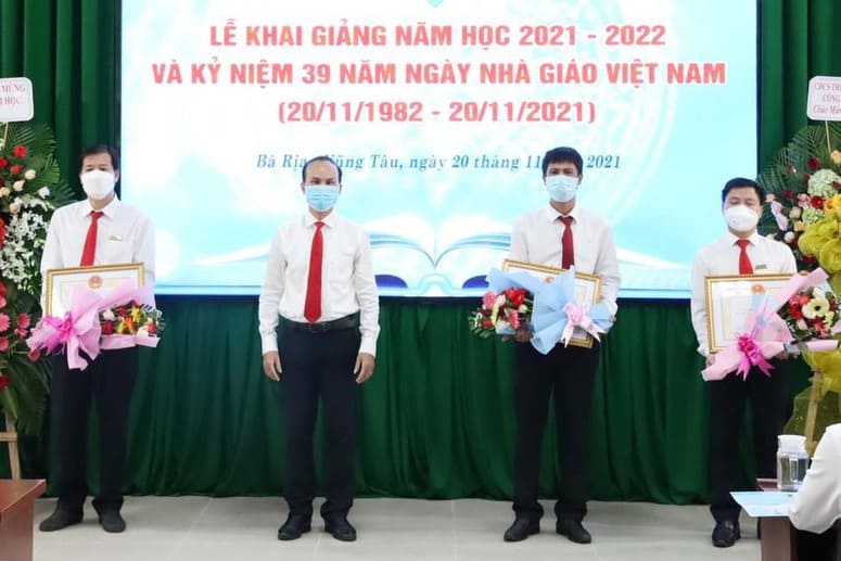 Thay Ban Giám hiệu Nhà trường, Hội Khuyến học tỉnh Bà Rịa – Vũng Tàu, Hội khuyến học Nhà trường, Ông Ngô Xuân Khoát, Bí thư Đảng ủy, Phó Hiệu trưởng nhà trường đã trào tặng các suất học bổng cho HSSV trong năm học 2021- 2022, với tổng số tiền là 80 triệu đồng. Đồng thời, đánh trống Khai giảng năm học 2021- 2022,  hy vọng một năm học mới với nhiều thành công.
