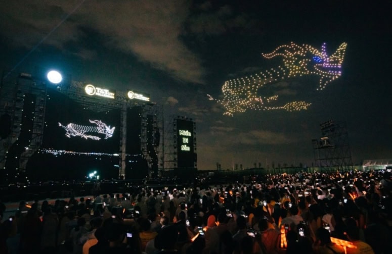 Hàng chục nghìn khán giả có mặt tại đại nhạc hội đã vỡ òa trước màn trình diễn drone ánh sáng quy mô nhất từ trước tới nay tại Tây Ninh.