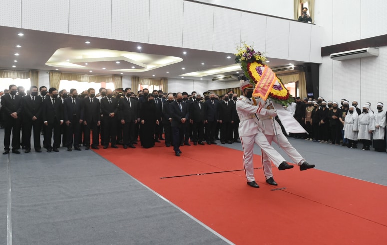 Đoàn Ban Chấp hành Trung ương Đảng Cộng sản Việt Nam do Ủy viên Bộ Chính trị, Thủ tướng Chính phủ Nguyễn Xuân Phúc dẫn đầu, vào viếng linh cữu đồng chí Trương Vĩnh Trọng. – Ảnh: VGP