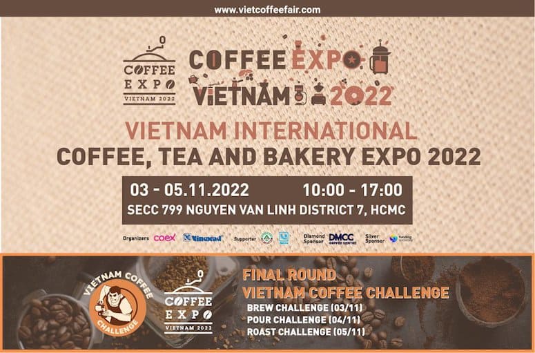 Sau hai năm gián đoạn do đại dịch, Coffee Expo lần thứ 6 tại Việt Nam sẽ trở lại trong năm nay. Coffee Expo 2022 được Coex Vietnam phối hợp tổ chức cùng Vinexad, có sự hỗ trợ từ Hiệp hội Cà phê – Ca cao Việt Nam (VICOFA) và Hiệp hội Cà phê Buôn Ma Thuột, đồng thời còn nhận được tài trợ từ DMCC của Dubai (Nhà tài trợ Kim Cương) và Funding Societies (Nhà tài trợ Bạc).