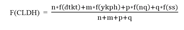 + Các hàm F, f(đtkt), f(ykph), f(nq), f(ss) đều trả về giá trị là số,  theo thang điểm 100.