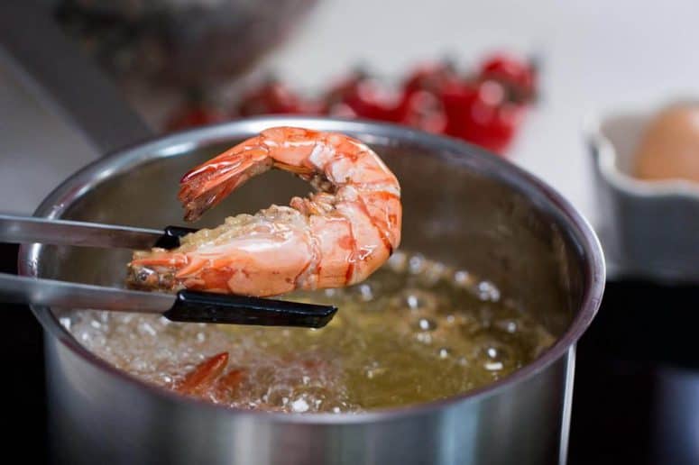 Bước 2: Chiên ngập phần tôm đã ướp cho đến khi săn lại và để ráo trên giấy thấm dầu ăn.