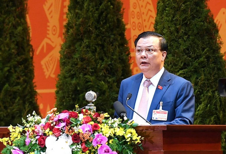 Bộ trưởng Bộ Tài chính Đinh Tiến Dũng trình bày tham luận tại Đại hội