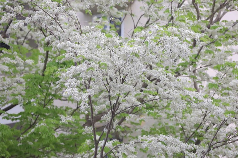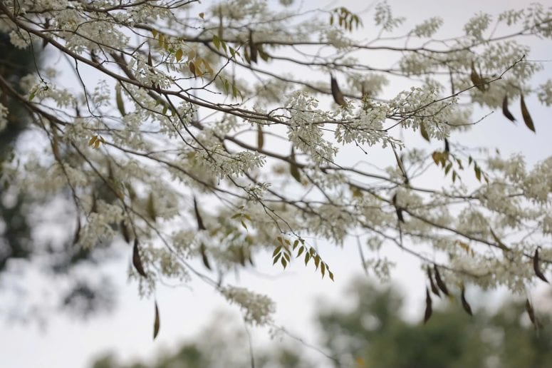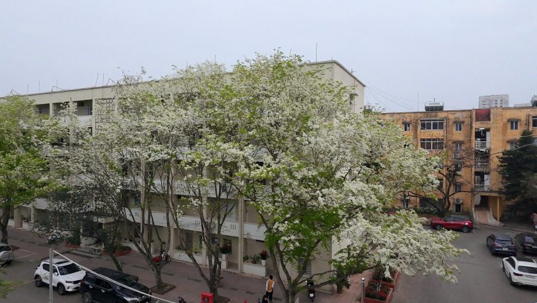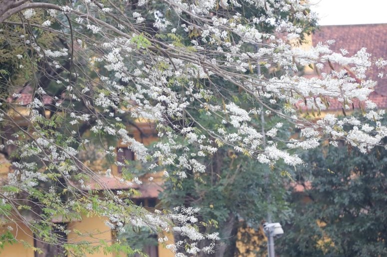 Trong khuôn viên khu Ngoại giao đoàn Trung Tự (Đặng Văn Ngữ, Đống Đa), hàng sưa bung nở tạo nên một góc chụp ảnh tuyệt vời cho những ai yêu hoa.