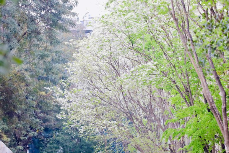 Màu trắng thuần khiết của hoa sưa không chỉ đẹp mà còn mang đến cảm giác yên bình, nhẹ nhàng giữa phố thị ồn ào.
