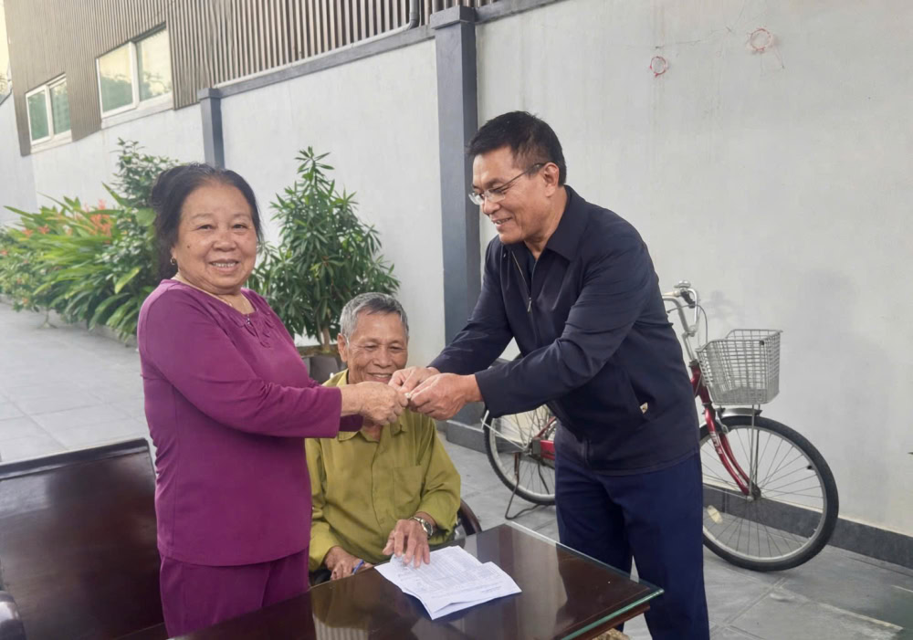 Người có công với cách mạng tại phường Nam Hồng Lĩnh ( Hà Tĩnh) nhận quà Tết từ cán bộ phường. Ảnh: Hà Lam