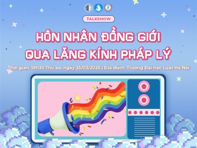 Chương trình Talkshow “Hôn nhân đồng giới qua lăng kính pháp lý” sẽ diễn ra dưới hình thức trực tiếp vào 18h30 ngày 25/3 tại Đại học Luật Hà Nội. Chương trình dự kiến thu hút sự tham gia của 300 – 400 sinh viên trên địa bàn thành phố Hà Nội.