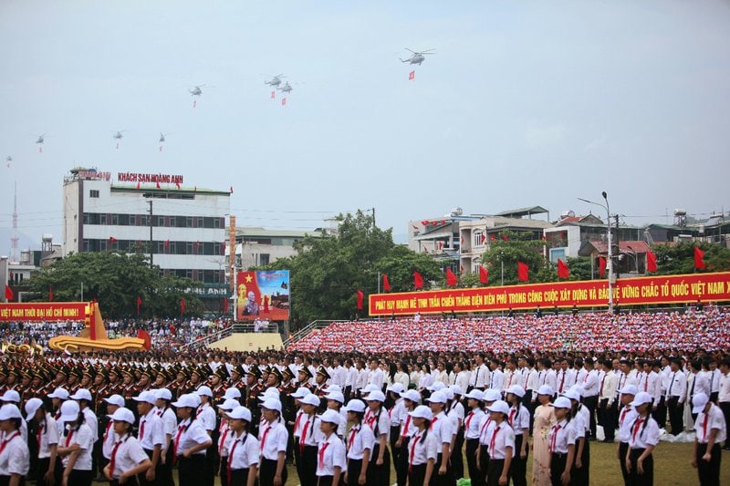Sau Lễ mít tinh tại Sân Vận động tỉnh Điện Biên là cuộc diễu binh, diễu hành của hơn 12.000 người với 4 lực lượng: Lực lượng pháo lễ, lực lượng Không quân bay chào mừng, lực lượng diễu binh, diễu hành, lực lượng đứng trên sân.