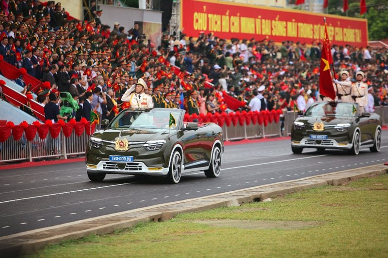 Dẫn đầu khối Công an nhân dân Việt Nam là xe chỉ huy của Thiếu tướng Lê Văn Hà, Phó Tư lệnh Cảnh sát cơ động.
