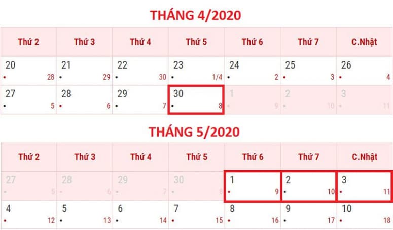 Cụ thể, ngày kỷ niệm Giải phóng miền Nam 30/4 và Quốc tế Lao động 1/5 năm nay sẽ vào thứ 6 và thứ 7,