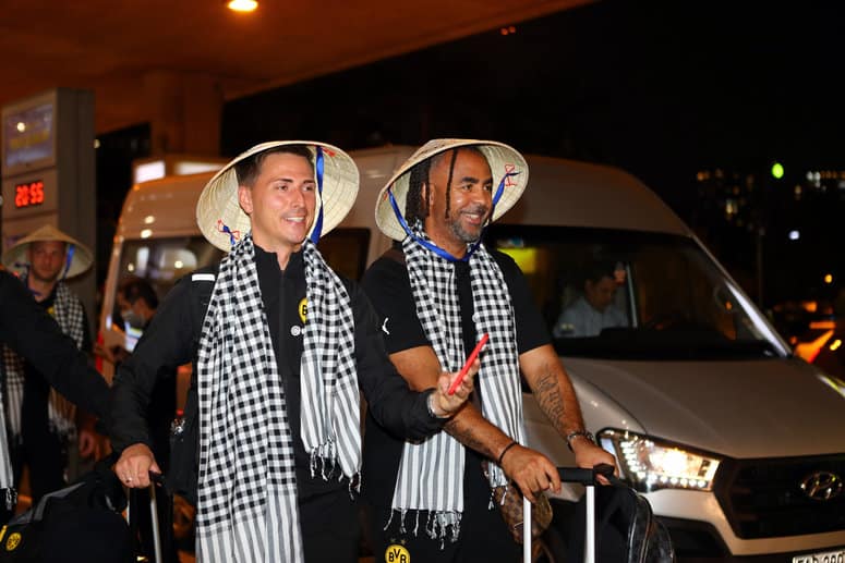 Sau khi nhận được sự tiếp đón nồng hậu, toàn đội trở lại khách sạn để làm thủ tục nhận phòng và nghỉ ngơi. Theo kế hoạch, những huyền thoại của Borussia Dortmund sẽ đá trận giao hữu với đội Vietnam All Stars vào lúc 19h ngày 28/9 trên SVĐ Thống Nhất.