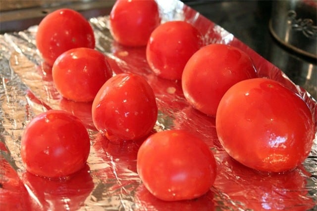 Bước 1: Cà chua chọn quả tươi, mọng không héo hoặc xanh. Rửa sạch cà chua rồi ngâm với nước muối loãng để loại bỏ hoàn toàn hóa chất.