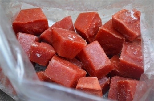 Bước 5: Sau khi đã đông thành đá thì lấy tách các viên đá cà chua cho vào hộp nhựa hoặc túi zíp để trong tủ lạnh dùng dần.