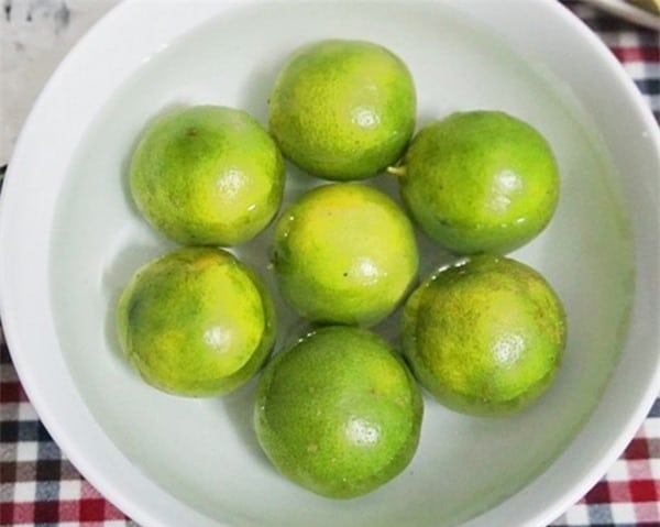 Bước 1: Hòa tan muối trắng với nước sạch rồi đem chanh ngâm trong dung dịch nước muối loãng khoảng 10 phút rồi vớt ra và rửa lại 2 – 3 lượt nữa với nước thường.