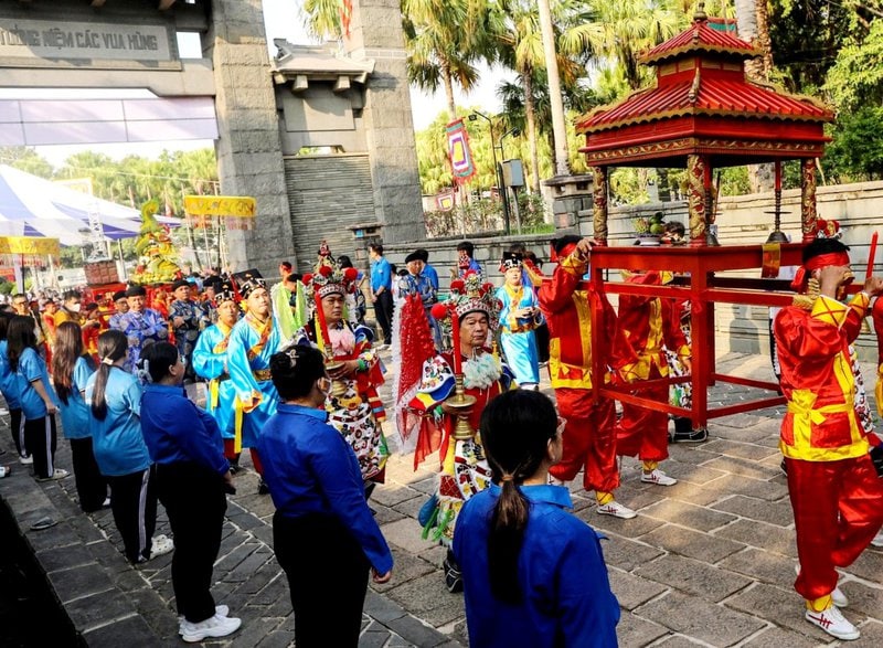 Sáng ngày 18-4, tại Đền Tưởng niệm các Vua Hùng thuộc Công viên Lịch sử- Văn hóa Dân tộc (phường Long Bình, TP Thủ Đức, TP HCM), hàng nghìn người dân đã đến dâng hương, dâng hoa tưởng nhớ các Vua Hùng nhân dịp giỗ tổ.