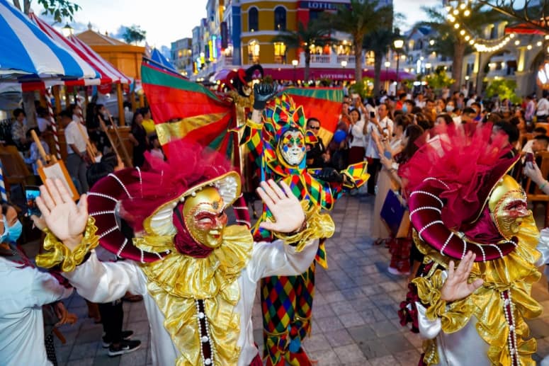 Ngay từ sáng, dòng người đông đúc đã nườm nượp đổ về Phú Quốc United Center. Đón du khách ngay từ cổng chào, Vũ hội hoá trang ngập tràn năng lượng, chương trình biểu diễn xiếc Venice diệu kỳ, những vũ điệu và âm nhạc đường phố… nối nhau tái hiện hoàn hảo một “phiên bản nước Ý” thu nhỏ giữa Grand World. Các hoạt động được diễn ra cả ngày trên tuyến phố dọc theo hai bên kênh đào Venice. Đây chính là nhịp điệu chưa từng có tại Việt Nam, khi du khách có thể hòa mình vào những không gian đời sống, lễ hội nổi tiếng thế giới kéo dài bất tận.