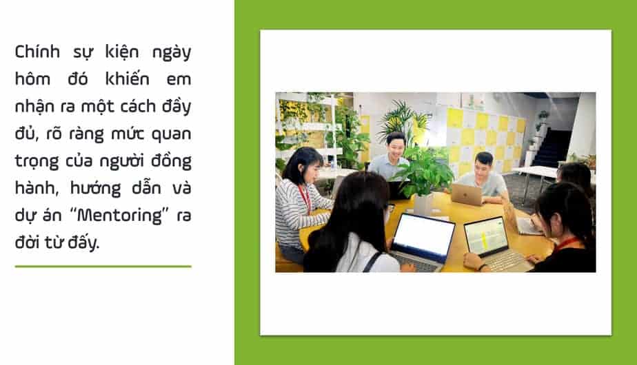 Trở về Việt Nam sau chuyến đi đó, Tiến thực sự suy nghĩ lại về cuộc sống và muốn cống hiến. Suy nghĩ thôi thúc trong đầu, phải thay đổi từ “con người” và phải bắt đầu từ “giáo dục”. Em bắt đầu nghĩ lại về bản thân mình, về công việc mình đang làm và cả về những điều đang nung nấu thì nảy ra ý định “Mentoring”. Thời điểm đó với Tiến, kế hoạch đã hình thành đến 70% trong đầu. Và một sự việc bất ngờ khiến em quyết định cho ra đời dự án với cụ thể những kế hoạch phải làm. Tiến nhớ lại: