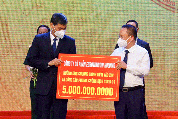 Ông Nguyễn Cảnh Hồng – Phó Chủ tịch HĐQT Công ty CP Eurowindow trao 5 tỷ đồng cho Quỹ vắc xin phògn Covid-19 của TP. Hà Nội |