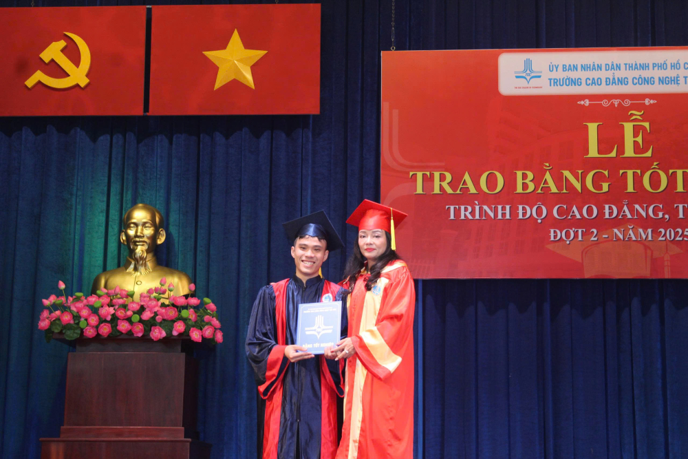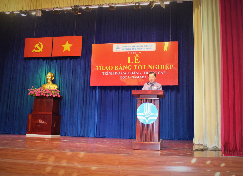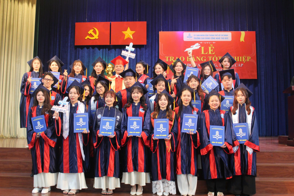 Ngày 27/12/2025, tại Hội trường H – Trường Cao đẳng Công nghệ Thủ Đức đã tổ chức Lễ tốt nghiệp cho tân cử nhân, tân kỹ sư hệ Cao đẳng chính quy – Đợt 2 năm 2025. Buổi lễ là sự kiện quan trọng, ghi dấu bước ngoặt ý nghĩa trong hành trình học tập và trưởng thành của hàng trăm sinh viên nhà trường.