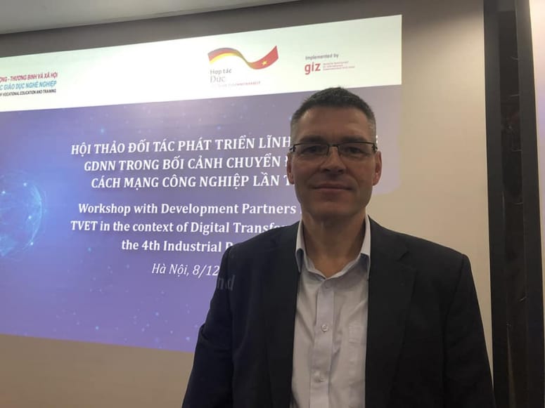 Sebastian Paust – Tham tán phụ trách Phát triển, ĐSQ CHLB Đức đã bày tỏ sự tin tưởng này khi Tổng cục trưởng Tổng cục GDNN Trương Anh Dũng chia sẻ tham vọng của Việt Nam trở thành một trong 30 nước đứng đầu lĩnh vực kinh tế số tại Hội thảo “Đối tác phát triển lĩnh vực GDNN: GDNN trong bối cảnh Chuyển đối số và CMCN lần thứ 4”.