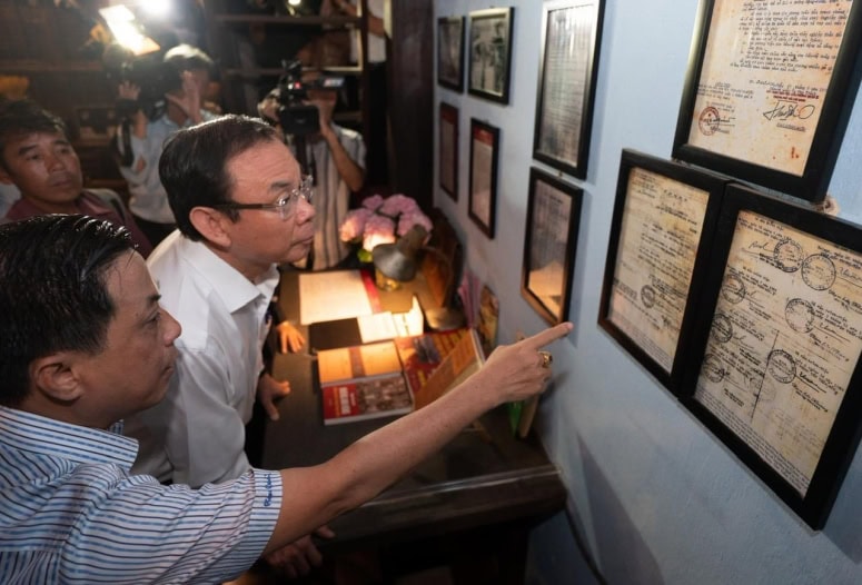 Ông Trần Vũ Bình giới thiệu cho Lãnh đạo UBND TP. HCM về ý nghĩa và giá trị của hiện vật trong một lần ghé thăm Bảo tàng Biệt động Sài Gòn.