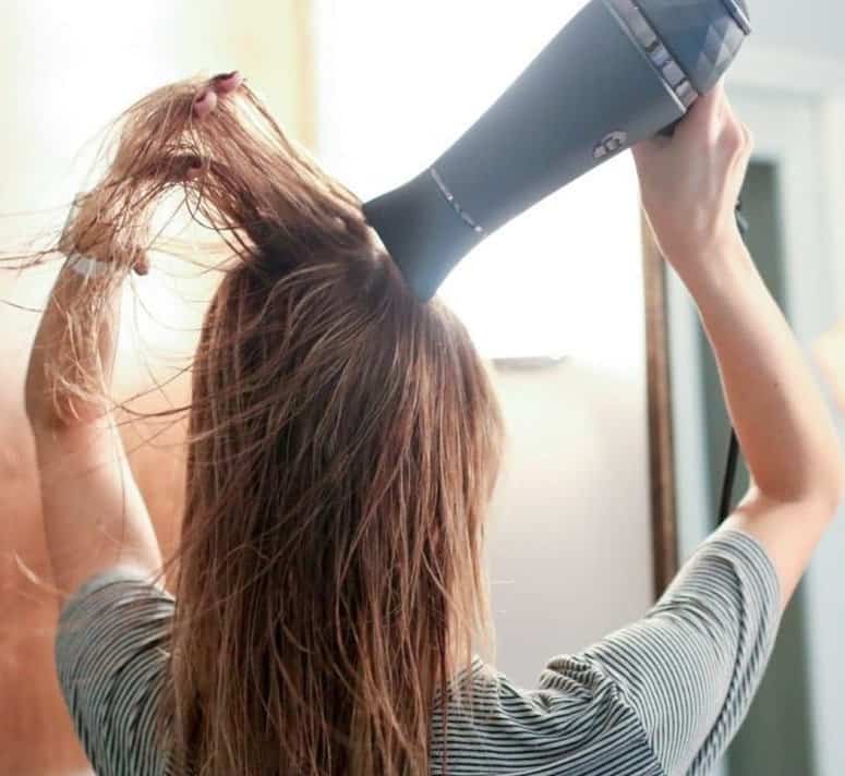 Khi sấy tóc đang ướt, nhiệt độ thay đổi đột ngột có thể khiến tóc dễ bị tổn thương, tóc chẻ ngọn và khô cứng. Vậy nên, sau khi gội đầu, bạn nên lau khô tóc bằng khăn mềm trước rồi mới sấy.