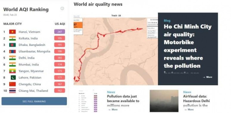 Trong khi đó, theo trang Airvisual, tính đến 7h30 sáng nay, Hà Nội là thành phố ô nhiễm nhất thế giới với AQI là 247, nồng độ bụi mịn là 179.5 µg/m³.