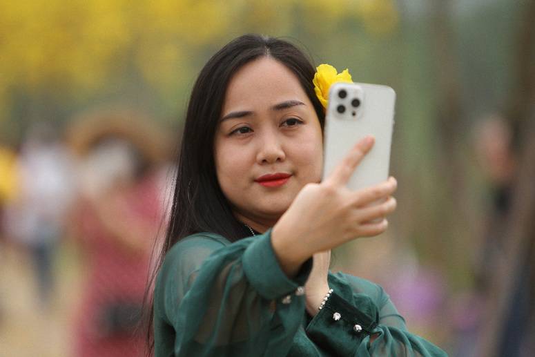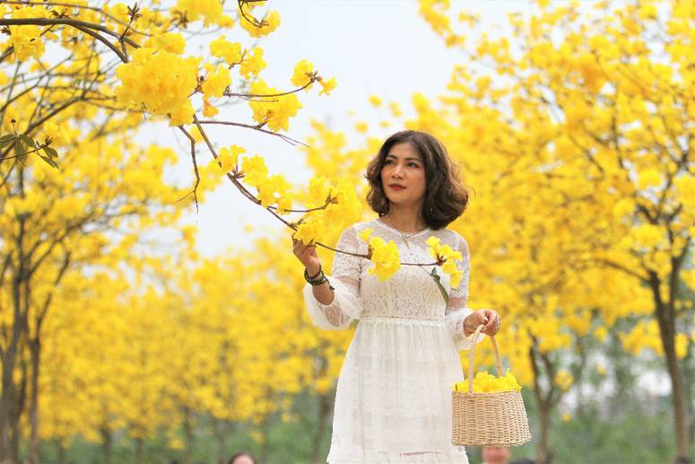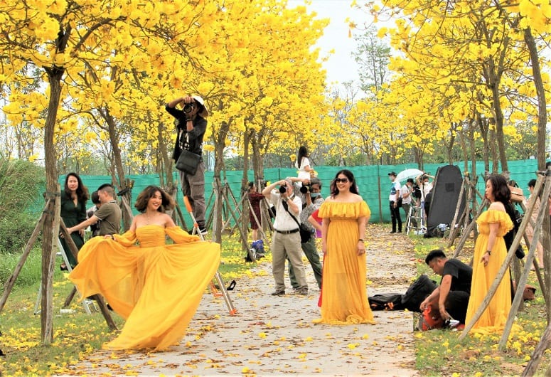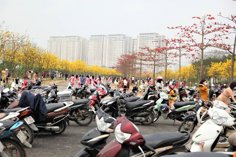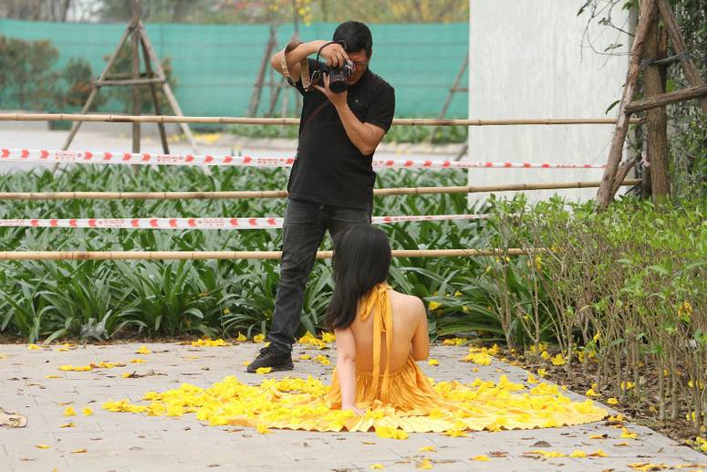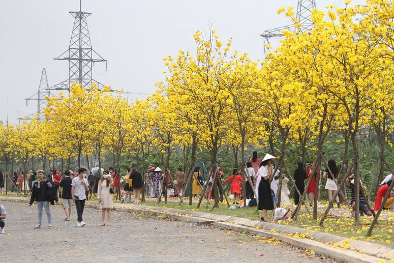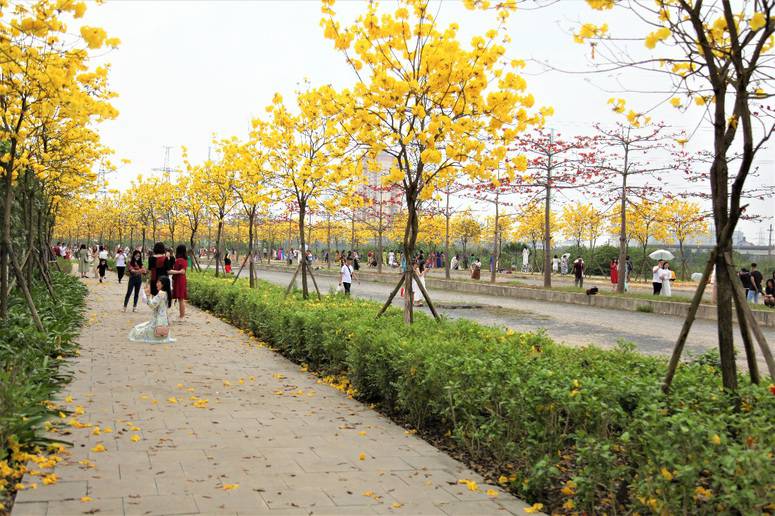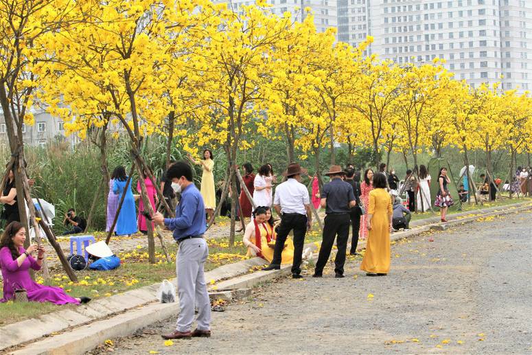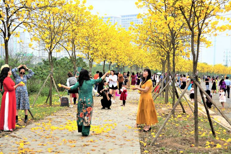 Vào thời điểm cây trổ hoa rực rỡ nổi bật với màu vàng tươi bắt mắt, rất đông người dân Thủ Đô đã tìm đến để chụp ảnh lưu giữ lại những khoảnh khắc đẹp.