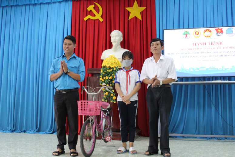 Rời khỏi Khu lưu niệm Luật sư Nguyễn Hữu Thọ, Đoàn tiếp tục đến với xã nông thôn mới Tân Hội – Thị xã Cai Lậy, tại đây Đoàn đã phối hợp với UBND xã đi thăm và tặng quà cho 2 mẹ Việt Nam anh hùng, 2 gia đình liệt sĩ, đồng thời trao tặng các phần quà cho 40 hộ nghèo và cận nghèo, 20 suất học bổng và 1 xe đạp, 1000 tập trắng, 80 hộp bút chì màu cho thiếu nhi, học sinh trên địa bàn xã với tổng trị giá gần 60 triều đồng.